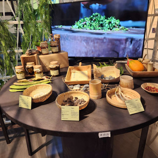Eventually I tracked my location to just above Wulai and and got off the bus. Stopped to climb up to this suspension bridge and enjoy the view. Then walked through the very quiet start to the city- almost nothing was open and it was starting to rain. I've foolishly not brought an umbrella on any of my day trips so far so I walked back through the town street to the only store that was open at that time and bought an umbrella and a grilled rice stick. This is a paste of glutenous rice (think the texture of mochi) that is on a stick and then grilled. You can get a variety of toppings on it, sweet or savory. I choose brown sugar syrup with peanut dust on it. Third breakfast!