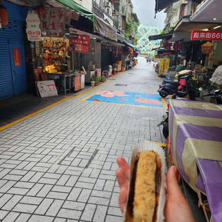 Sitting at a lil tourist cafe in the lil tourist land of Wulai. I got up at my typical 4:30 am and was out of the house by 630 after an hour of productive travel planning and organizing my stuff. I walked out of SJ's very quiet neighborhood. It is a Monday which is more of a "weekend" feeling that I was expecting- all of the stands in the morning market are completely closed. I was hungry (ate some yogurt and fruit at 5am) and because SJ the wheat avoider was not with me, I got a giant, soft, fluffy bun from Family Mart as my second breakfast.